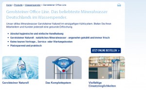 wasserwerfer überarbeitete die komplette Online Präsenz des Gerolsteiner Office Line Trinksystems, sowie des zugehörigen Wasserspender Online Shops. Optimale Benutzerführung und Suchmaschinenkompatibilität waren die Ziele der Überarbeitung.
